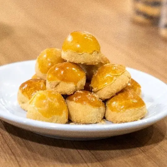 Varian premium dari kue nastar yang terkenal dengan cita rasa istimewa dan tampilan yang mewah. Dibuat dengan bahan-bahan berkualitas premium, Nastar Sultan memiliki tekstur lembut dengan isian selai nanas yang manis dan sedikit asam.